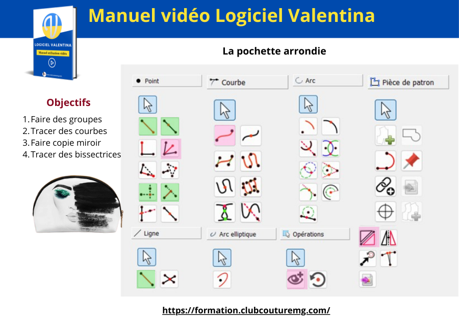 C'est une formation au logiciel valentina et une initiation au modélisme car à la fin vous aurez créé plus de 5 accessoires et vos patrons de bases corsage, jupe et pantalon etc.. La première va vous servir à comprendre et maîtriser le logiciel car nous allons utiliser 80% des outils. La deuxième partie vous permettra d'appliquer vos connaissances en modélisme.