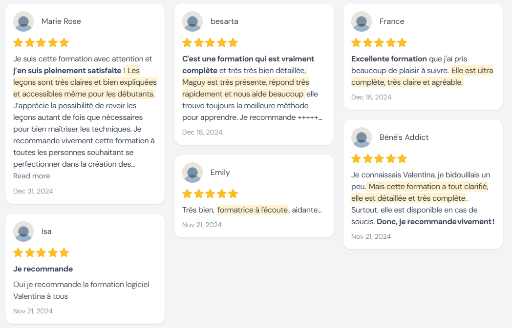 👉 Parfait pour les débutants ou celles qui veulent se familiariser avec Valentina RAPIDEMENT avant de passer à l'étape suivante !
